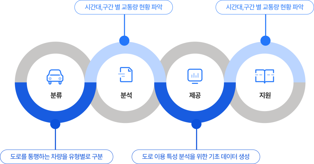 차종 분류 데이터를 활용하여 교통 흐름 분석데이터 기반 정책 수립을 지원하는 시스템입니다.